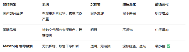 Maxtop礦物導熱油用實證說話,以實力贏得信賴。我們真誠歡迎全球導熱油制造商一起參與熱穩(wěn)定性對比實驗,在高溫氧化環(huán)境下同臺比拼!